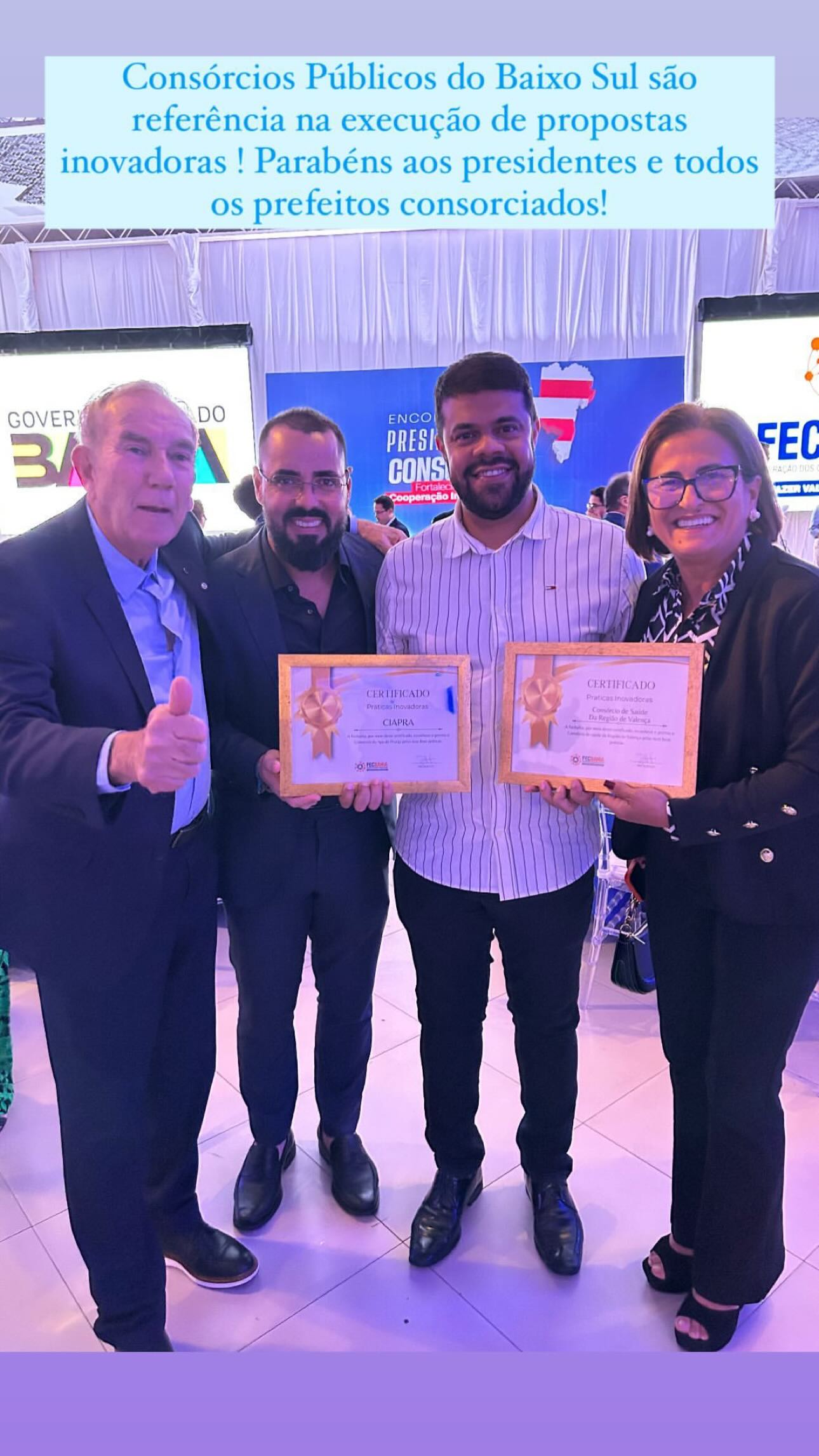 Reconhecemos o trabalho dos consórcios que receberam o Certificado de Boas Práticas, destacando ações fundamentais como regularização fundiária, agricultura familiar, pavimentação, infraestrutura e gestão de saúde. Essa conquista reflete o compromisso com o desenvolvimento dos municípios baianos e a melhoria na qualidade de vida da população. União e força pelo desenvolvimento da Bahia!